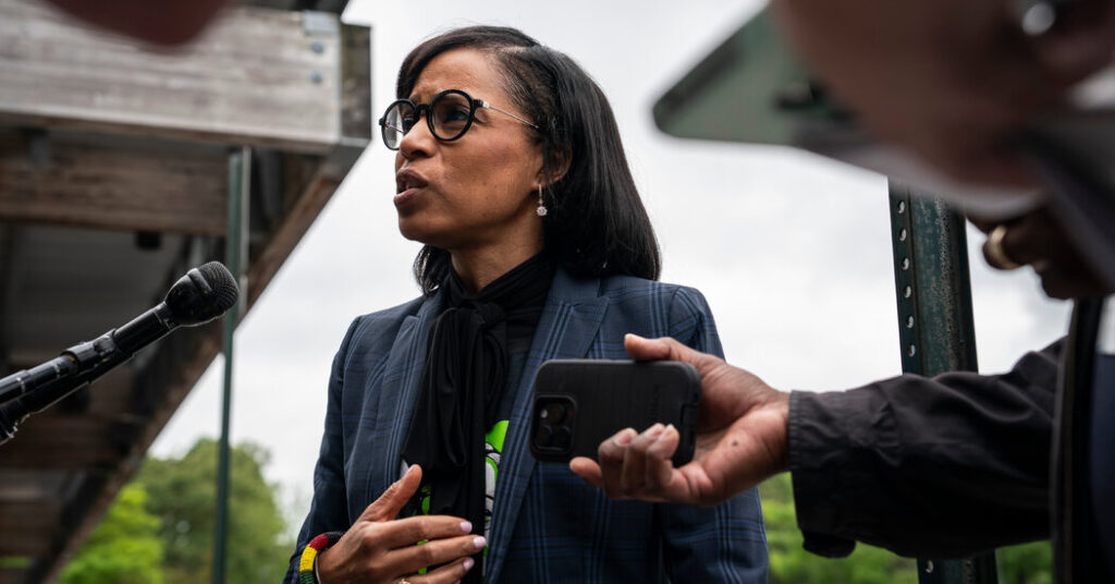 “The fight ahead will not be easy,” Ms. Alsobrooks told a celebratory crowd. “A lot of people look at our state and say, ‘Oh, it’s Maryland — it’s a blue state, we can worry about another race someplace else.’ Yes, Maryland has been a blue state, but it will only stay a blue state if we put in the work.”