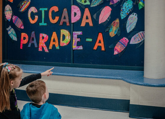 As the third graders of Cumberland Elementary in the Chicago suburbs colored, clipped and glued paper to make cicadas with…