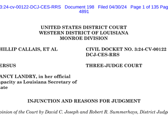 A newly drawn congressional map in Louisiana was struck down on Tuesday by a panel of federal judges who found…