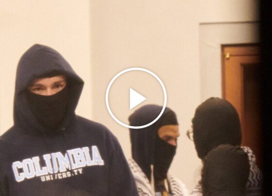 People inside barricaded the doors of Hamilton Hall with furniture. Outside, demonstrators linked arms to wall off entrances.