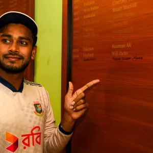 Miraj's name on the honor board of Rawalpindi as the first bowler of Bangladesh