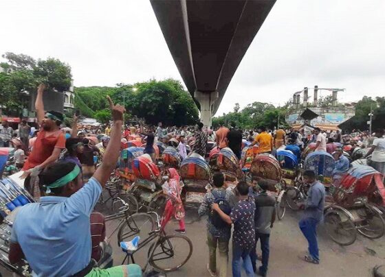 The pedal-powered rickshaw drivers have blocked the road at Shahbag intersection with 7-point demand, including stopping battery-powered rickshaws on the…