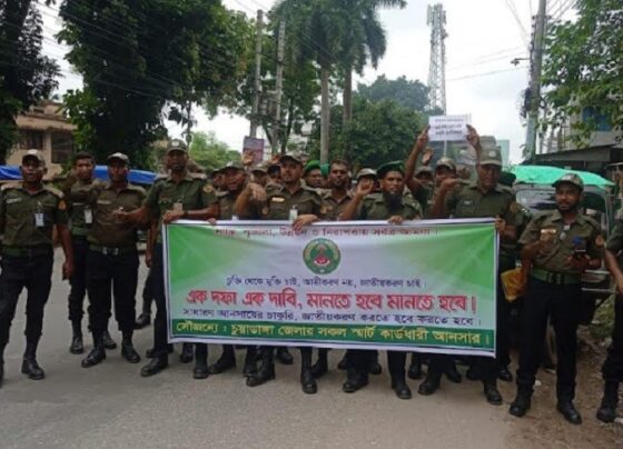 All the 240 Ansar members with RSMAT cards working in the district formed a human chain in Chuadanga to demand…