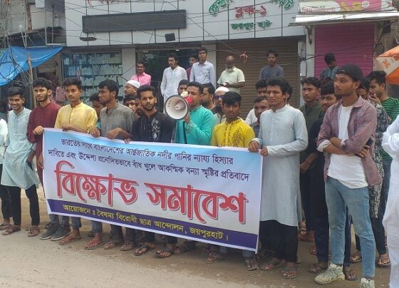 Joypurhat Anti-Discrimination Student Movement held protest march and rally to demand fair share of international river water of Bangladesh with…