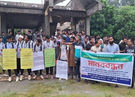 Human chain for 5-point demand including resignation of head teacher Barun in Palash