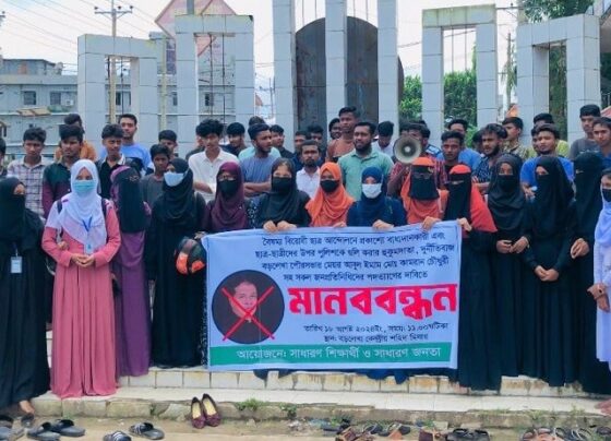 In Baralekha of Moulvibazar district, ordinary students and people held a human chain program on Sunday to demand the resignation…