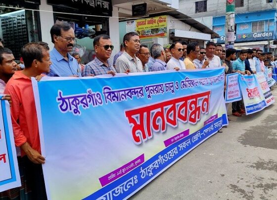 Thakurgaon airport and medical college demand human chain