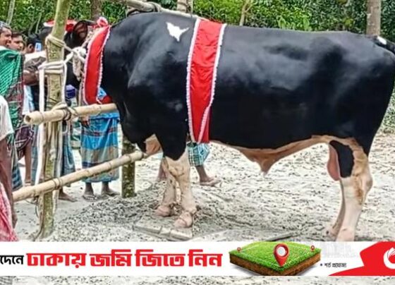 12 feet long. Height 6 and half feet. The cow is fondly named Prince Mamun. Ayub Ali Bepari of Mathabhanga…