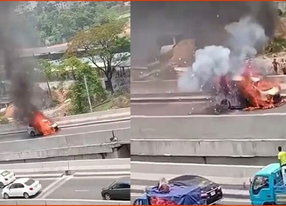 A private car caught fire on the flyover adjacent to Hazrat Shahjalal International Airport in Dhaka. There was no one…