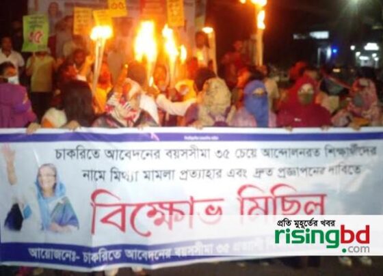 People in their twenties took out a torch march to protest against false cases and demand notification that the age…