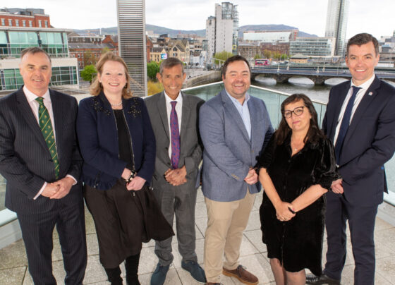 L-R: Alister Sutherland QPM, Deputy Chief Constable of the British Transport Police, Julia Corkey, Chief Executive, ICC Belfast, Waterfront Hall…