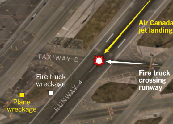 An Air Canada jet collided with a fire truck at LaGuardia Airport in Queens on Sunday night, killing two people…