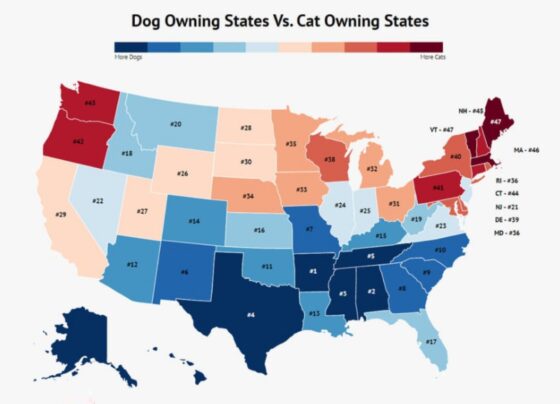 A map has revealed the true extent of pet ownership across the U.S.―and shows which states choose dogs over cats…