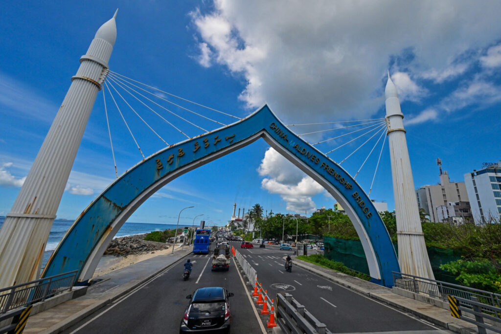 Commuters making their way through the Chinese-funded and built Sinamale Bridge in the Maldives capital of Male on November 16, 2023. The bridge has been cited by some as an example of “debt-trap diplomacy.”