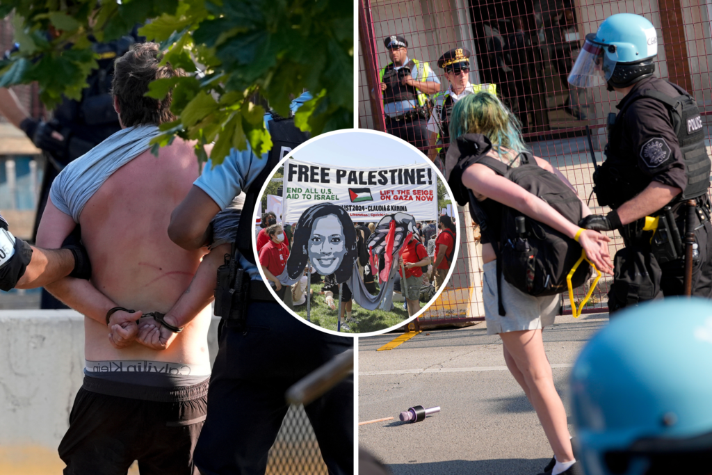 Thirteen people were arrested on Monday – many of which were pro-Palestine protesters who breached an outer security fence – near the Democratic National Convention.