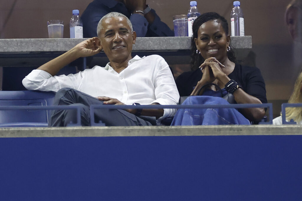 Former President of the United States Barack Obama and his wife Michelle Obama look on during a match of the Women’s Singles First Round of the 2023 US Open.