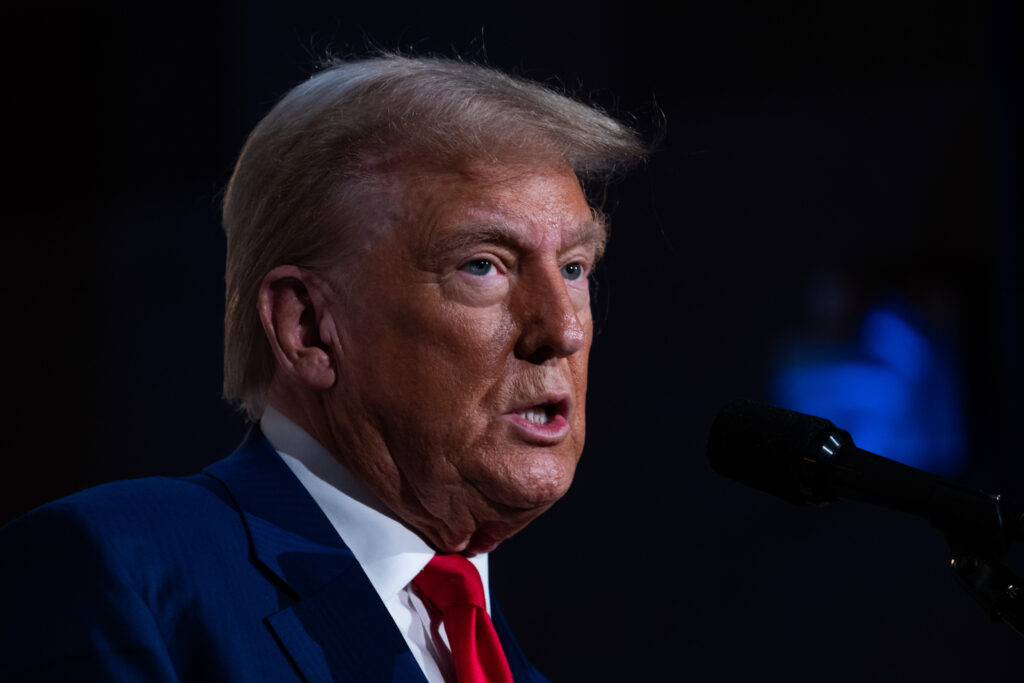 Republican presidential nominee, former President Donald Trump addresses the Economic Club of New York on September 5, 2024, in New York City. Trump said he “greatly” appreciates two words included in Judge Juan Merchan’s decision on Friday to delay the former president’s sentencing date until after the 2024 election.