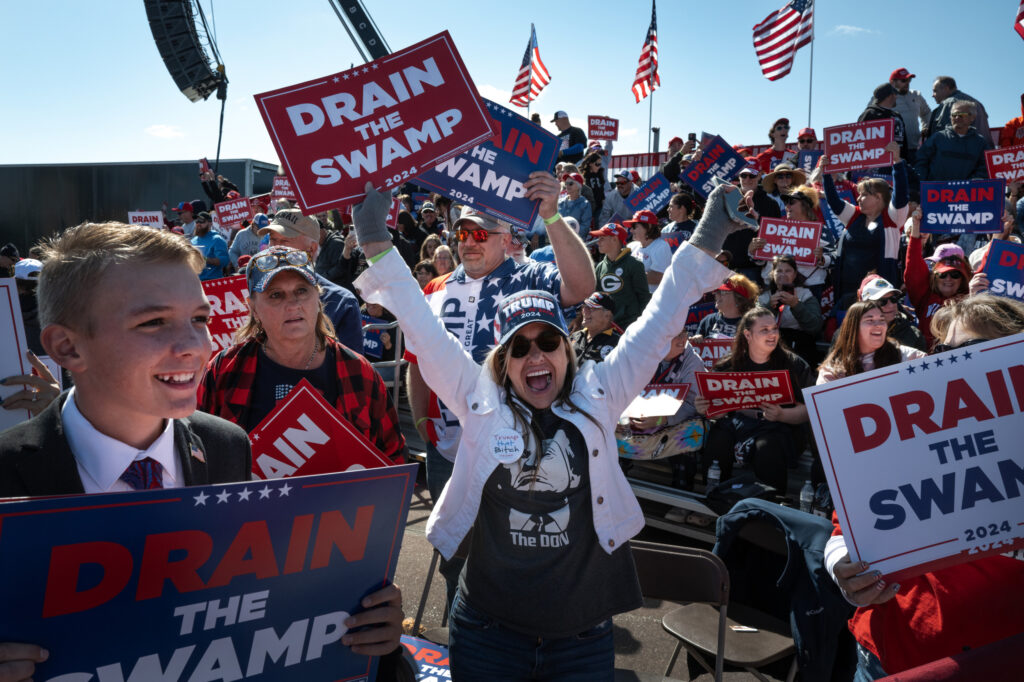 Guests attend a campaign event with Republican presidential nominee Donald Trump on September 7 in Mosinee, Wisconsin. Trump intensified his rhetoric on immigration on Saturday, warning that removing migrants from the United States would be a “bloody story” if he’s reelected in November.