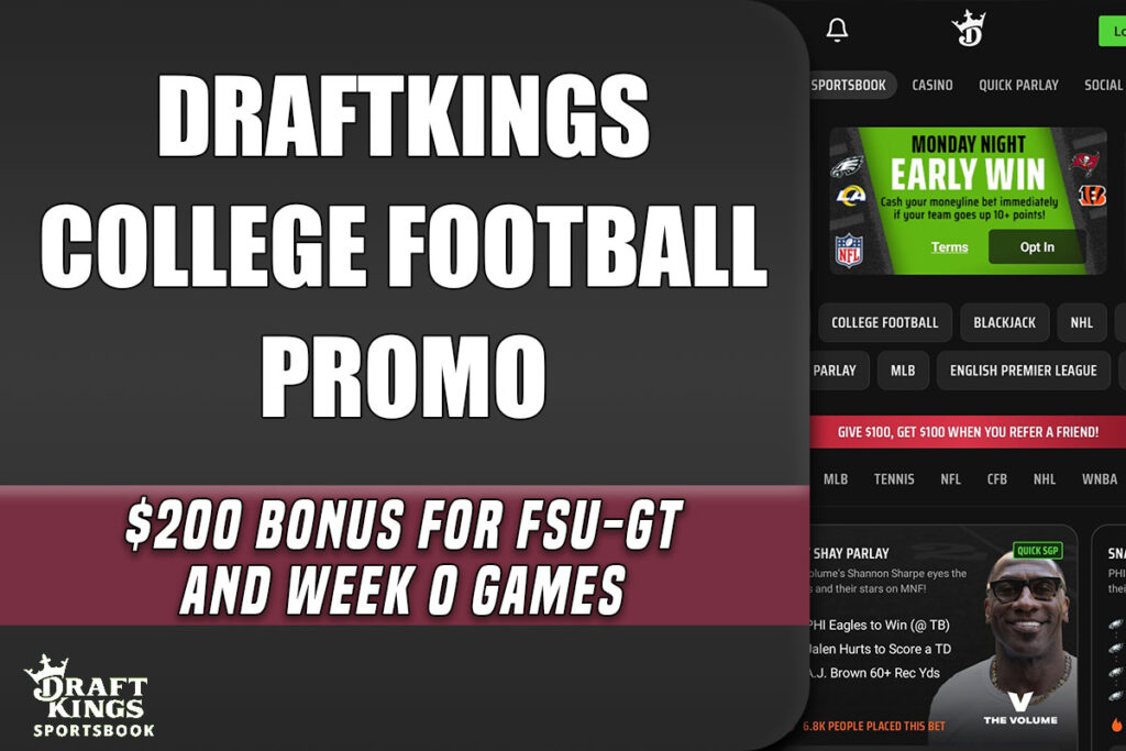 Next, place as little as $5 on FSU vs. Georgia Tech or another Week 0 matchup. DraftKings will instantly deliver $200 in bonus bets as eight (8) $25 stakes. If unused, these bonus bets expire after seven days.