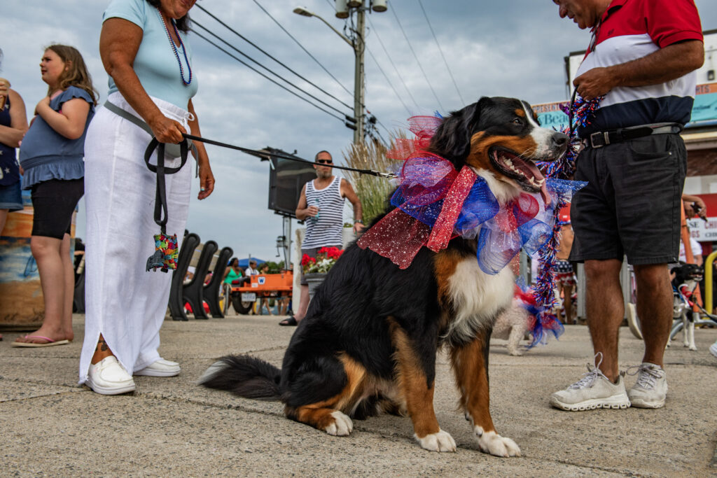 A dog in red, white and blue ribbons is seen during the 17th annual Fourth of July Pet Parade in Salisbury, Massachusetts, on July 4, 2024. Gen Z is being forced to get rid of their pets due to financial constraints.