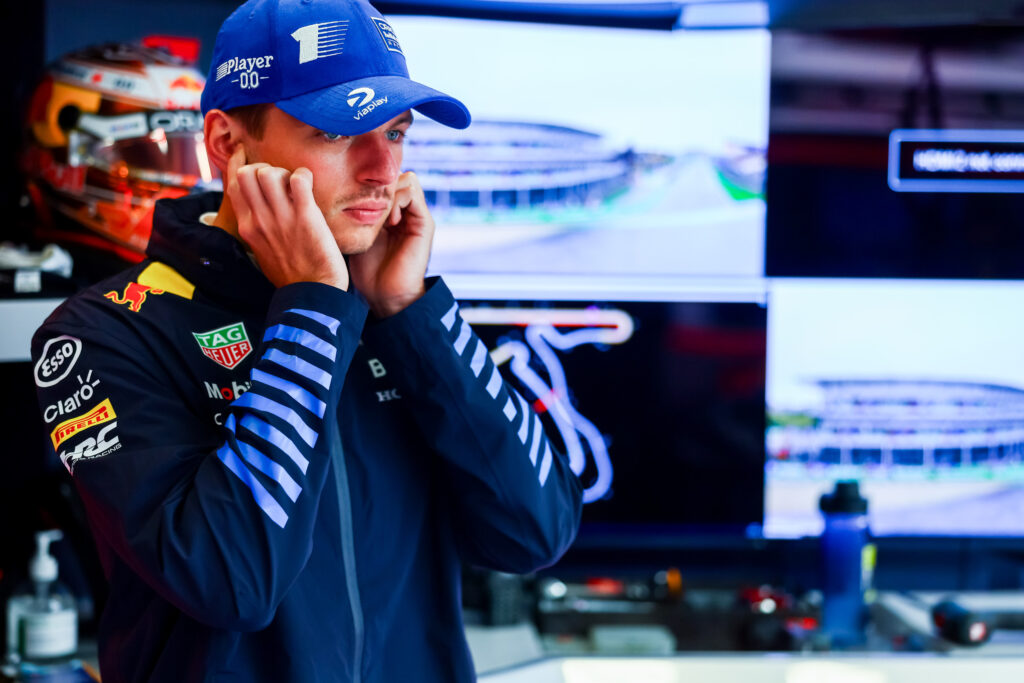 Max Verstappen of the Netherlands and Oracle Red Bull Racing looks on in the garage during practice ahead of the F1 Grand Prix of Netherlands at Circuit Zandvoort on August 23, 2024 in Zandvoort, Netherlands….