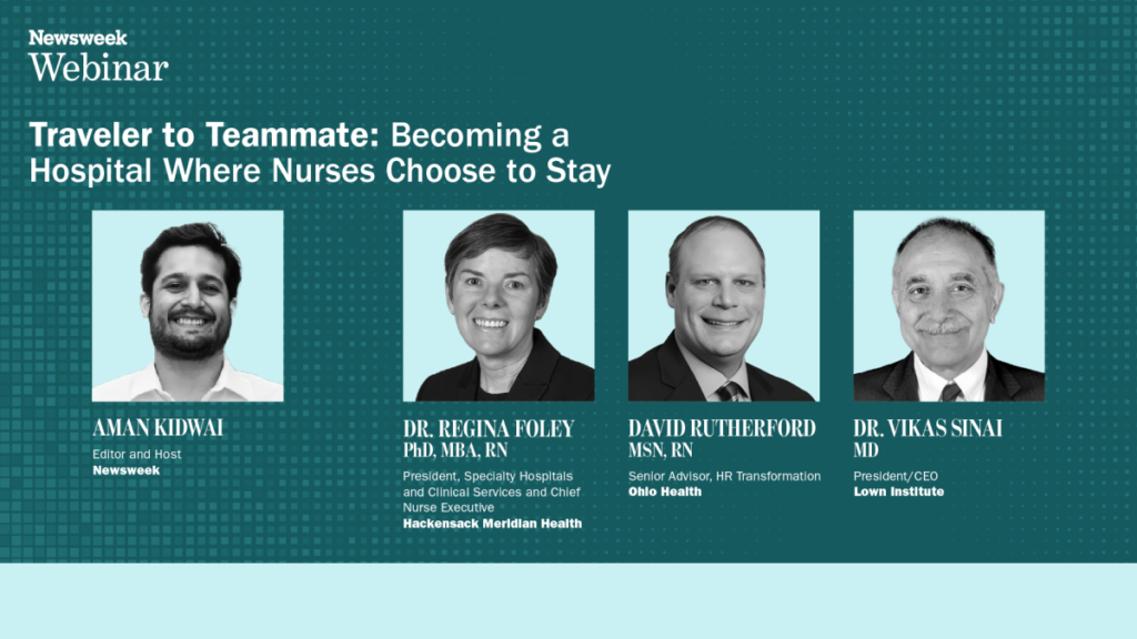 On Wednesday, November 19, Newsweek’s Workplaces Editor Aman Kidwai hosted a virtual event to explore how health systems are converting traveling nurses into full-time staff members. The webinar convened experts in health care research, human resources and clinical services to discuss best practices for retaining skilled nurses from contracting agencies.