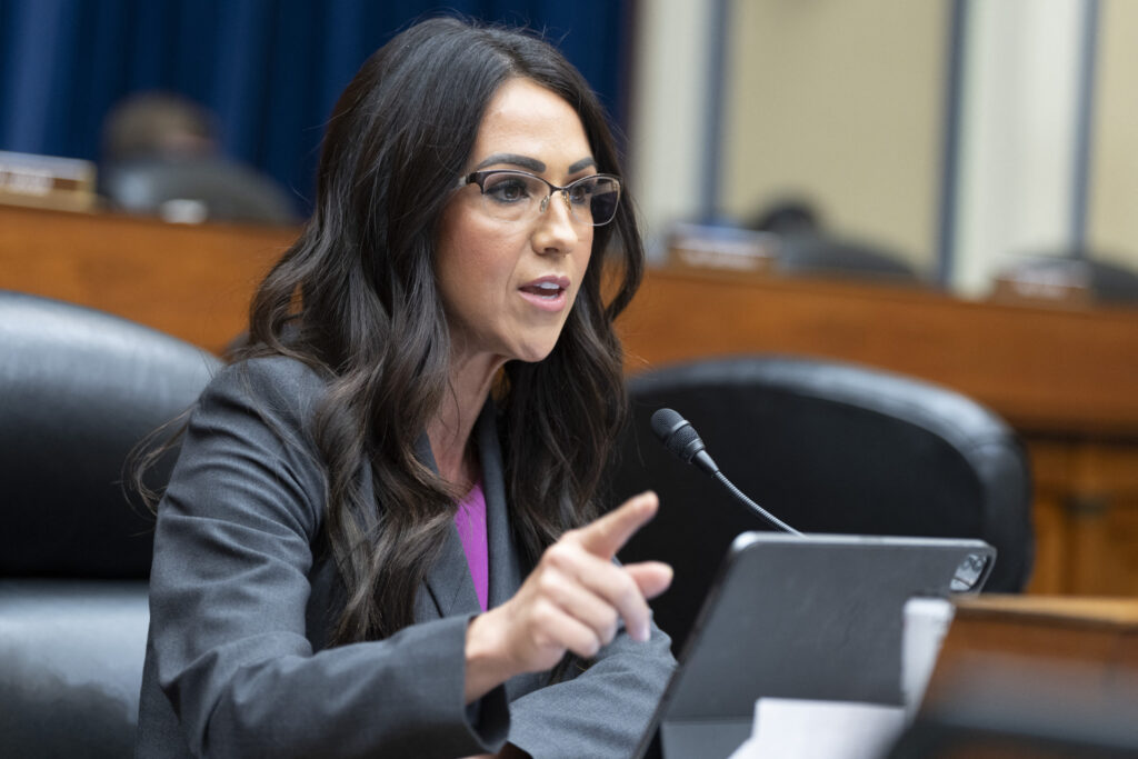 Representative Lauren Boebert pictured on Capitol Hill in Washington, DC, July 22, 2024. Boebert has been challenged to a debate in the same Denver theater she was asked to leave during a “Beetlejuice” performance in September 2023 following disruptive behavior.