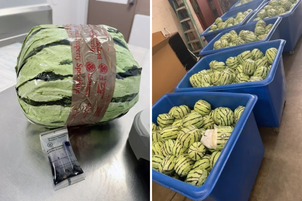 During the secondary inspection, the watermelon shipment was offloaded to the intensive dock for further examination, where the discovery was made.