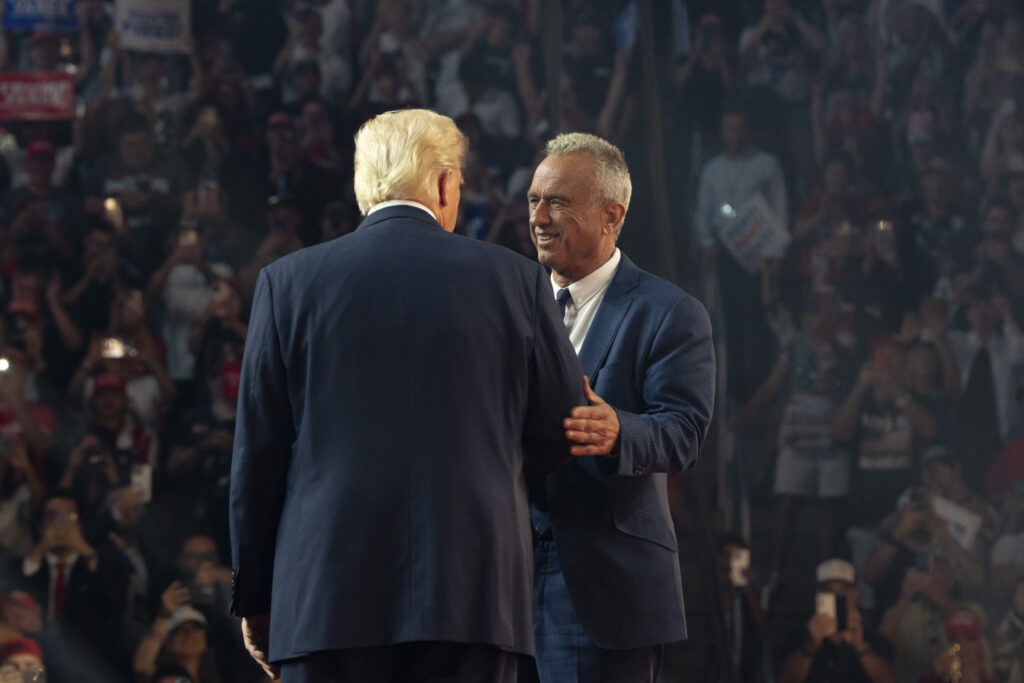 Robert F. Kennedy Jr. embraces Donald Trump at a rally in Glendale, Arizona, on August 23. On Friday, judges in North Carolina and Michigan sided with Kennedy’s requests to remove his name from ballots to boost Trump’s presidential election chances.