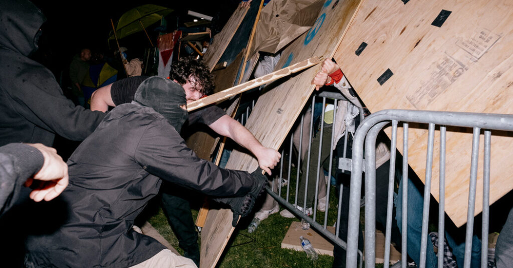 Counterprotesters arrived later that night and sprayed students with pepper spray, shot fireworks into the encampment and used metal pipes and other objects to attack protesters. Police and security officers who were present for parts of the melee didn’t intervene for hours, and no arrests have been made in the attacks.