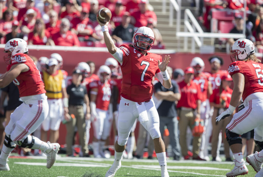 Cam Rising #7 of the Utah Utes throws a pass against the Washington State Cougars during their game September 25, 2021 at Rice Eccles Stadium in Salt Lake City, Utah. Rising left Saturday’s game due to a hand injury.