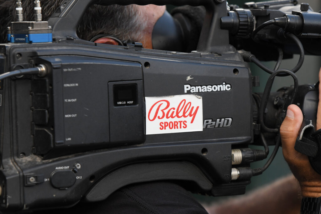 DETROIT, MI – AUGUST 16: A detailed view of a Bally Sports logo on the side of a television camera during the MLB game between the New York Yankees and the Detroit Tigers at Comerica Park on August 16, 2024 in Detroit, Michigan. The Yankees defeated the Tigers 3-0. The collapse of several regional Bally Sports networks could open a door for streaming giants to take over the regional rights to MLB teams.