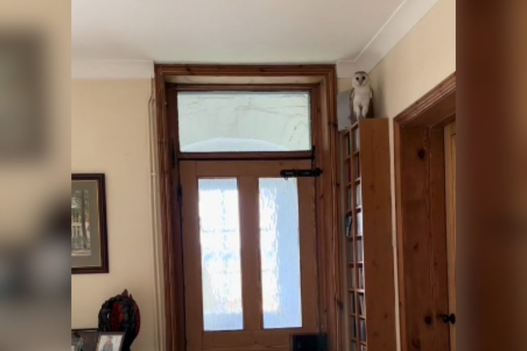 The encounter took place around 8 a.m., when the owl, known to frequent a neighboring barn, ventured inside the woman’s U.K. home in the county of Norfolk. “It lives in the barn next door and we see it flying about a lot but never inside,” the homeowner explained in the comments.